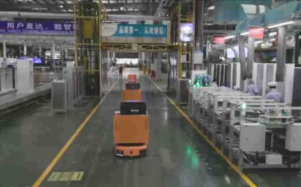 为车载冰箱物流配送打造的智能解决方案,,包含产中物流通过潜伏举升AMR搬运至线边,,,产后成品物流智能仓储,,流程包含产中物流智能齐套入库,,,,线边安灯叫料AMR智能配送至线边,,,,成品入库、、、出库,,通过无人堆高车机器人,,智能仓储管理替代人工作业管理,,,,实现更高存储、、、更高效率、、、、更具柔性化的解决方案。。